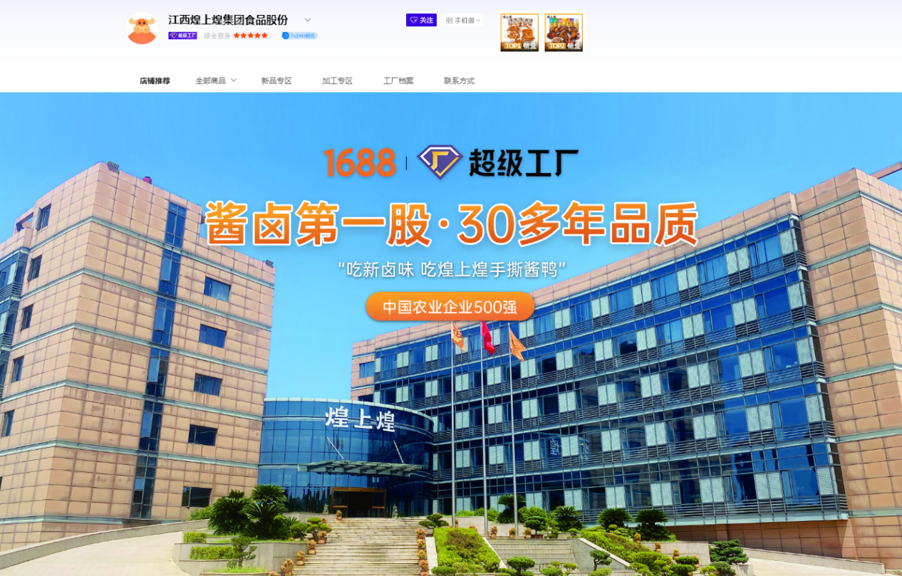 近日,国内酱卤行业领军品牌煌上煌正式宣布官方权威认证阿里巴巴集团1688超级工厂,这一战略举措标志着煌上煌正加速拥抱产业数字化浪潮,进一步打造市场增长新引擎。通过认证接入阿里巴巴集团旗下1688平台的超级工厂模块,煌上煌将依托其强大的供应链整合与数字化营销能力,进一步优化生产与销售链路,为B端客户提供更高效、更精准的服务。