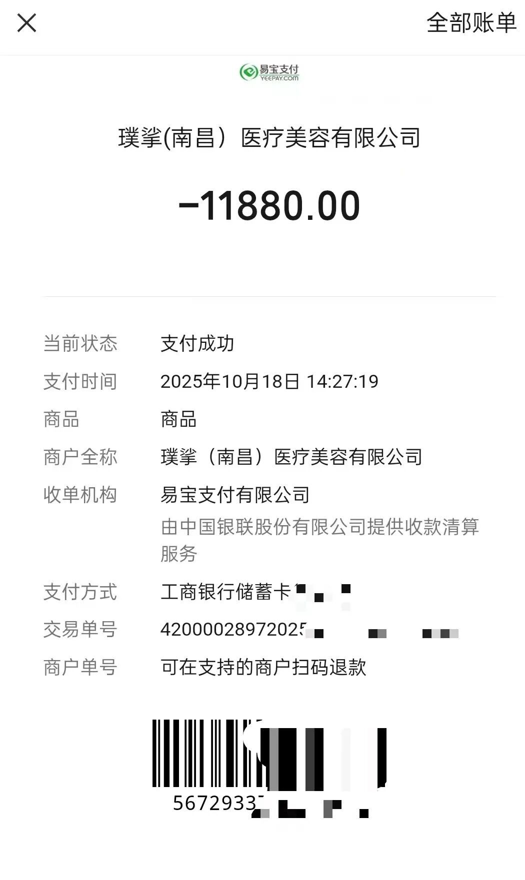 “当时讲的是4万多元,算上之前支付的3280元及各种优惠下来,我最后花了7800元做了三个项目。”章女士表示,当时她的钱款都支付给了璞挲(南昌)医疗美容有限公司,且这种不透明、全靠口述的报价方式,也让她无法进行理性的消费判断。