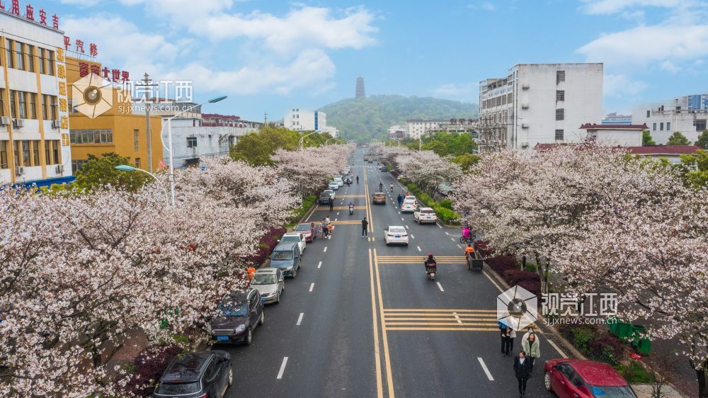 阳春三月,春暖花开,万物复苏,在江西省吉安市庐陵文化生态园门口双秀路两旁的樱花开始盛开了,有的含苞欲放、娇柔轻盈,有的花开灿烂、浪漫多姿。花骨朵长得洁白无瑕,冰清玉洁。徜徉在人行道上,春风吹起,樱花飘香,沉醉其中,流连忘返。视觉江西 李小明 摄
