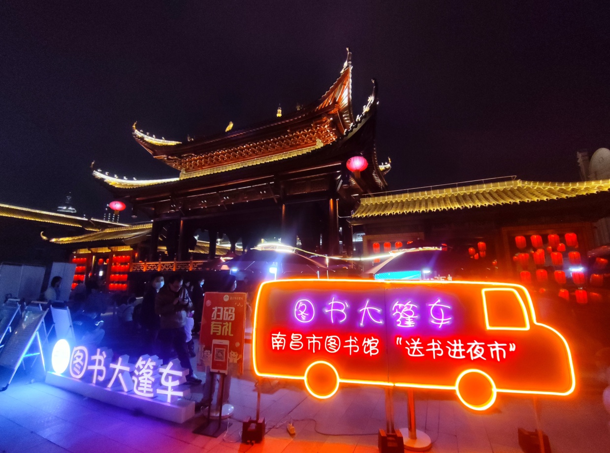 阳春三月,万物生长,天气乍暖还寒。3月26日晚,南昌万寿宫历史文化街区灯火通明。在一片熙熙攘攘的人群中,市民惊奇地发现,现场有一辆看起来非常特别的车,这便是南昌市图书馆的“图书大篷车”,正在开展“送书进夜市”活动。