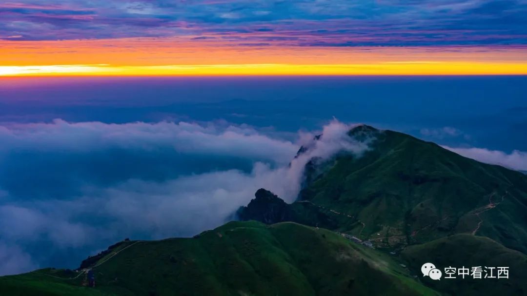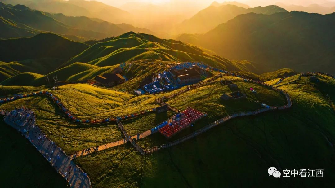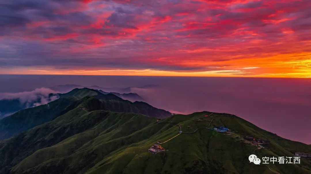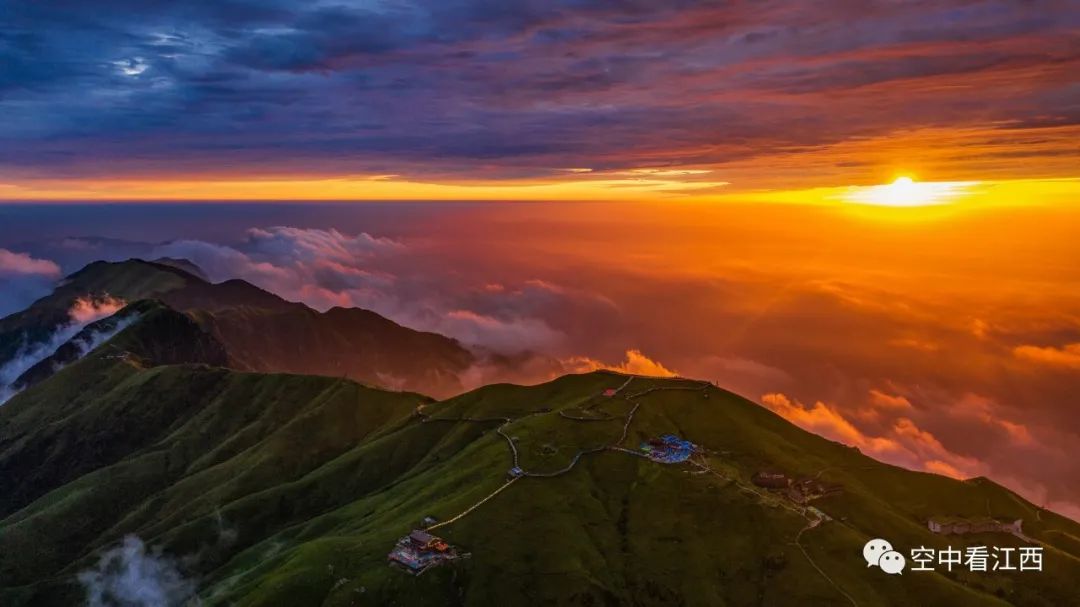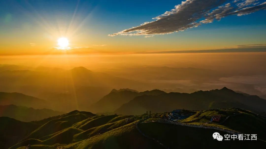 近日,航拍位于江西省中西部的武功山风景区。无论是朝阳、晚霞还是云海,武功山的风景都十分壮丽。