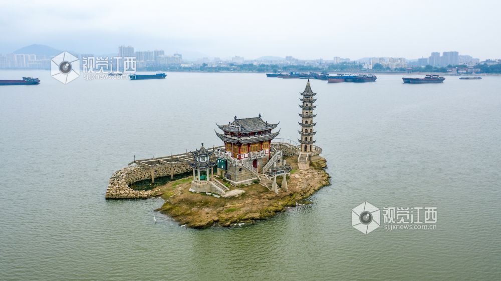 2021年6月12日,鄱阳湖丰水期的落星墩。