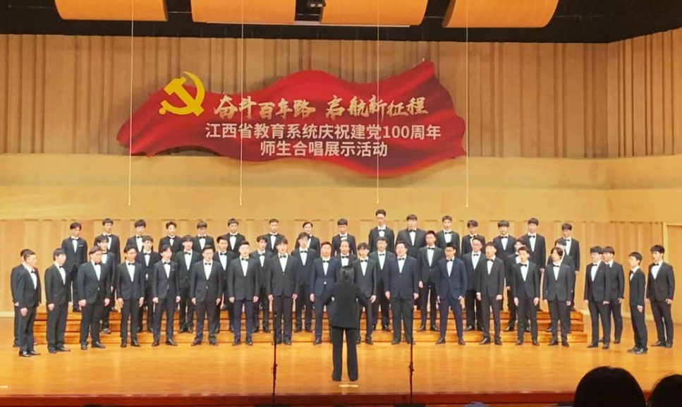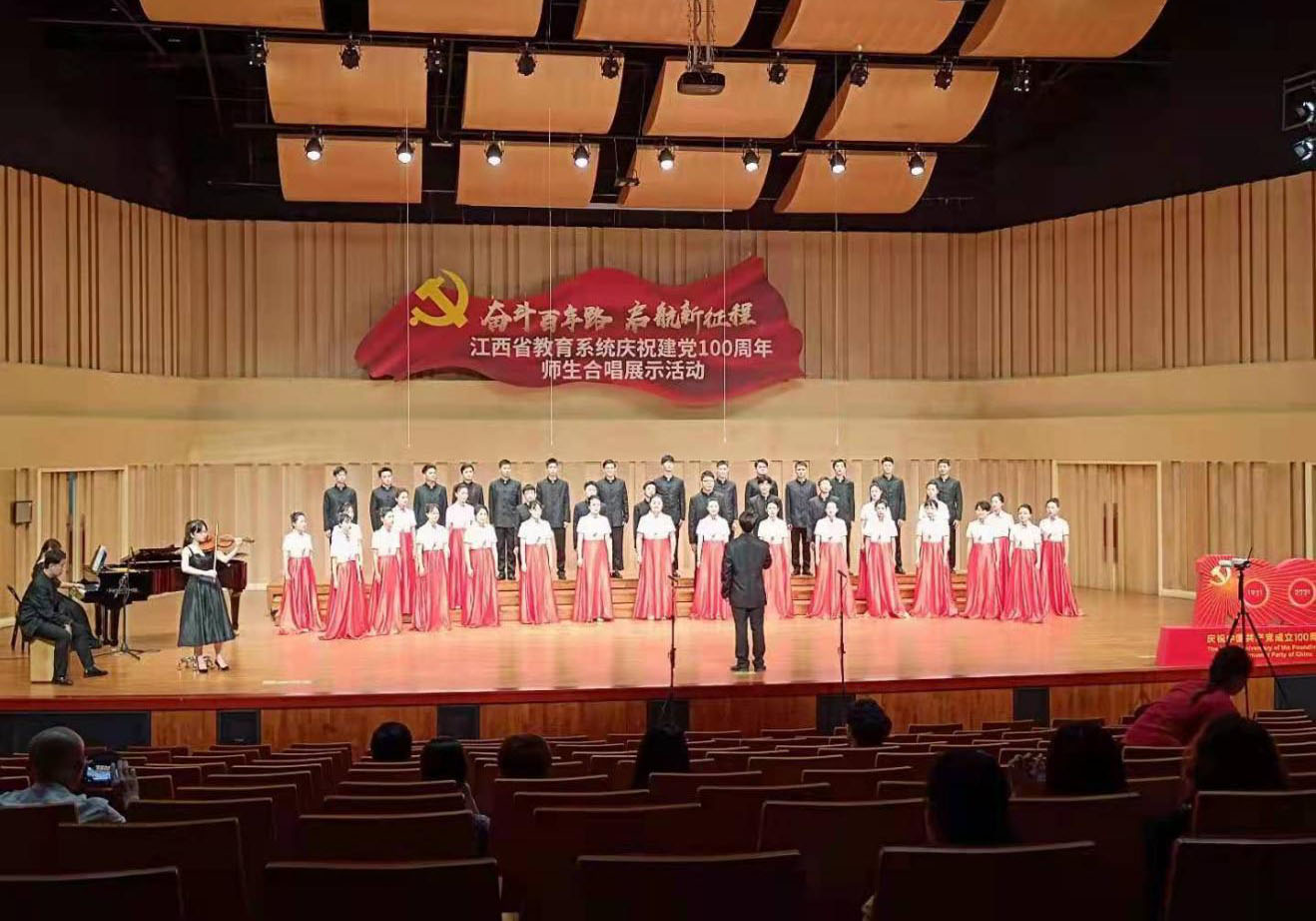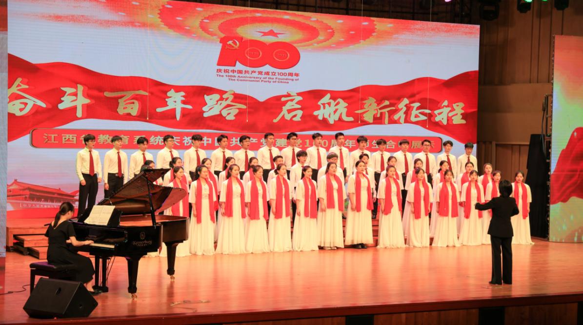 6月27至29日,“奋斗百年路 启航新征程”江西省教育系统庆祝建党100周年师生合唱展示活动在华东交通大学音乐厅落幕。江西师范大学教师合唱团、学生甲组(非专业组)合唱团、学生乙组(专业组)合唱团参加了现场展示活动,并分别取得高校教师本科组总分第1名、大学生甲组总分第2名和大学生乙组总分第2名的好成绩,全部斩获所在组别的一等奖。音乐学院大学生乙组合唱团入选汇报音乐会展示,学校荣获优秀组织奖。江西师范大学党委委员、副校长姚弋霞代表学校在汇报音乐会上领奖。