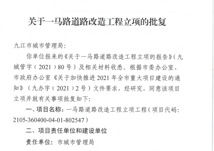 项目名称:一马路道路改造工程立项工程
