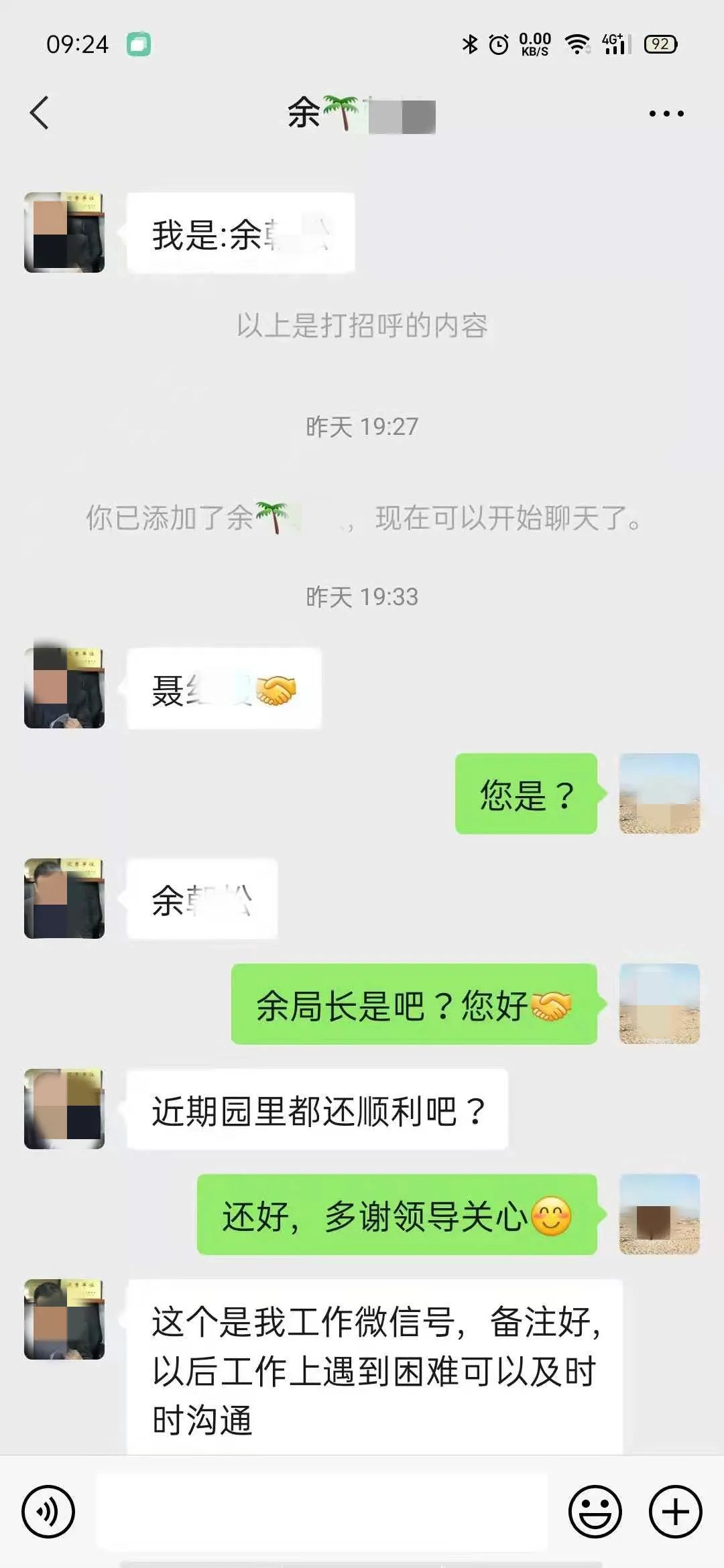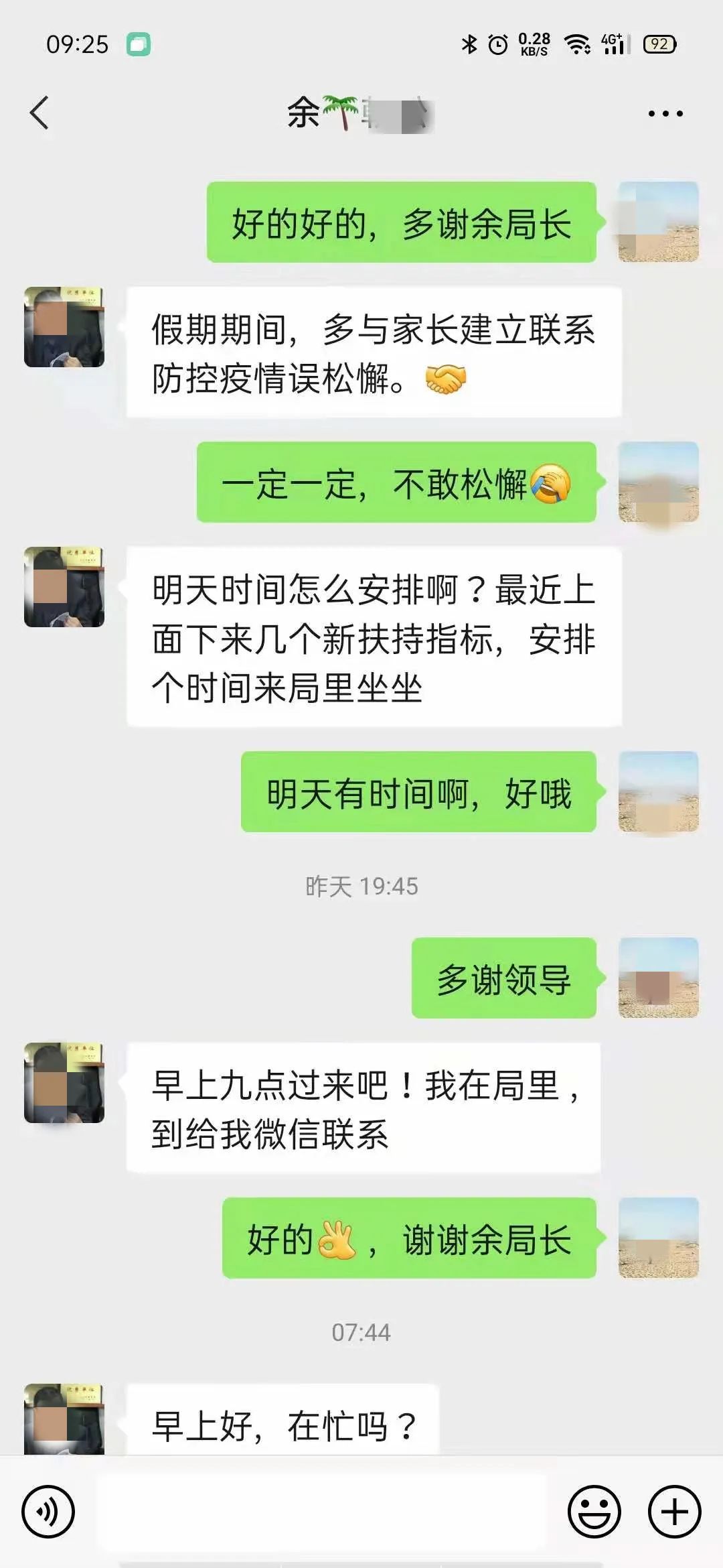 7月11日晚7点,都昌县一幼儿园园长聂女士的手机微信突然收到一个好友申请。通过之后,对方开门见山,自称是余某某。在都昌教育系统的人都知道,余某某就是县教育体育局局长,自己的顶头上司。