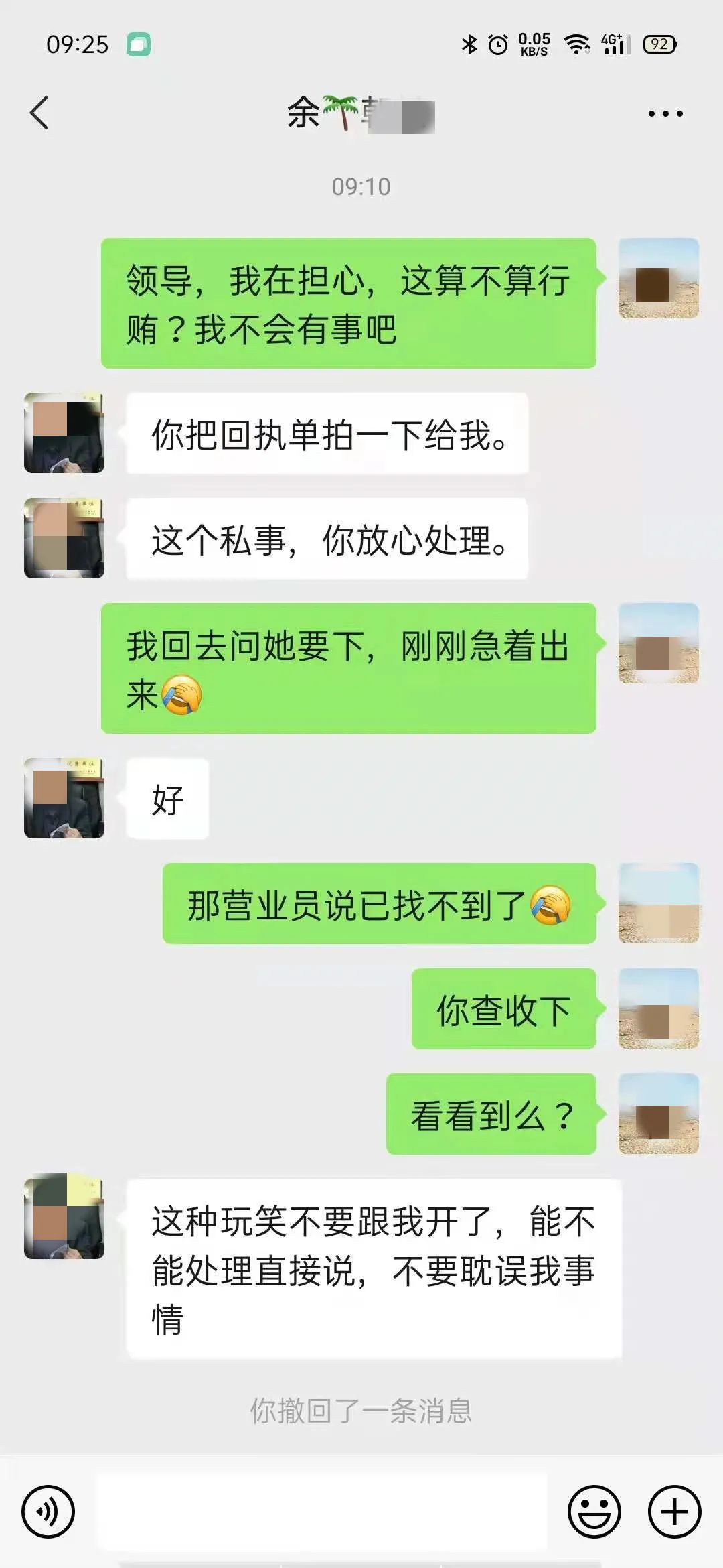 第二天一早,“余局长”又主动打招呼,称自己临时陪上级领导去调研,让聂女士晚点再到他办公室去。大概半个小时后,“余局长”又发来信息,称自己有一点私事需要聂女士帮忙处理。