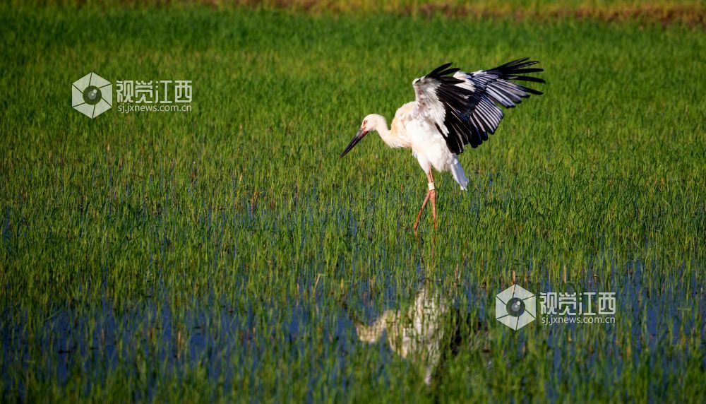 2021年7月21日,正值盛夏时节,两只国家一级保护动物——东方白鹳在江西省瑞昌市赤湖湿地嬉戏、觅食。 九江市野保专家介绍,东方白鹳属大型涉禽,体态优美,是国家一级重点保护动物。一般只在秋、冬季在长江中下游湿地湖泊越冬,此次夏季在瑞昌赤湖湿地观测到它们,在整个九江地区尚属首次。珍稀鸟类成为留鸟在此栖息,充分说明了九江的生态环境持续向好,赤湖水质优良。 视觉江西 封晓雯 魏东升 摄