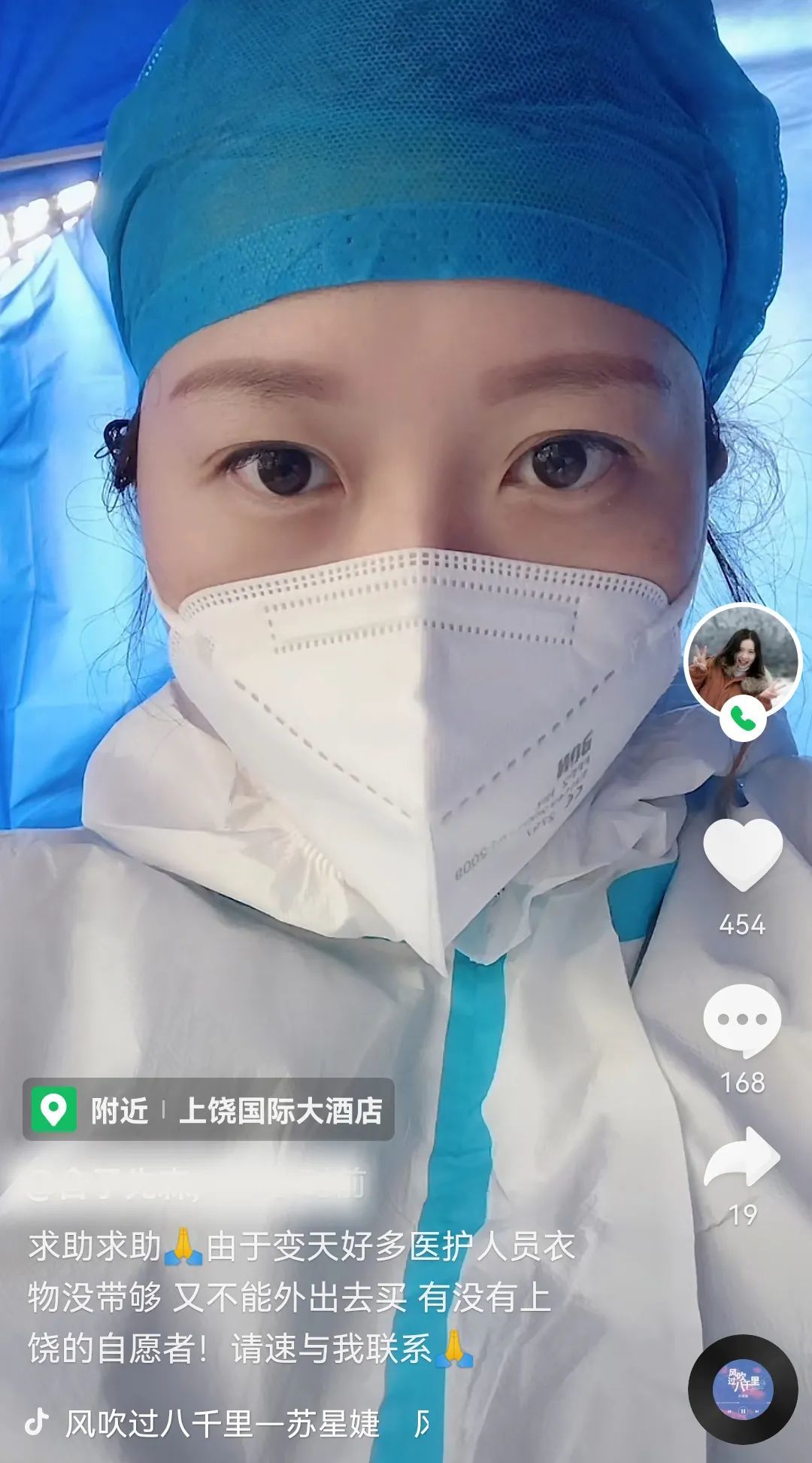 于是,11月7日晚九点左右,舒文婷发布了一条抖音求助。抖音发布后,迅速得到了广大上饶市民的关注,很多人都表示可以代劳购买衣物或赠送衣物。更有热心的市民直接冒着雨夜将衣物送到了舒文婷等人所住的酒店。