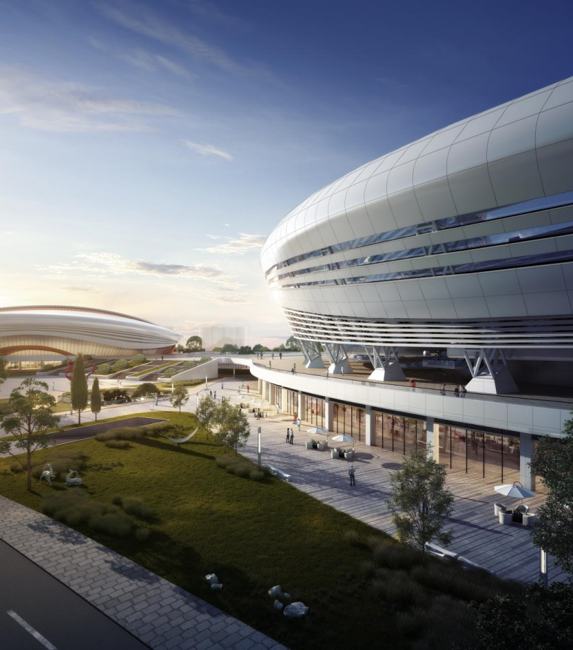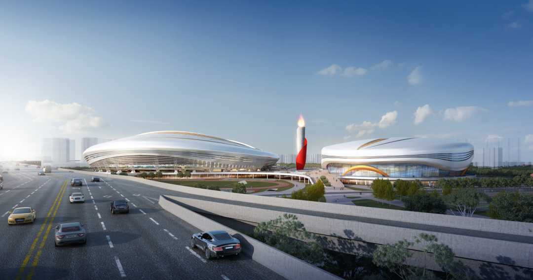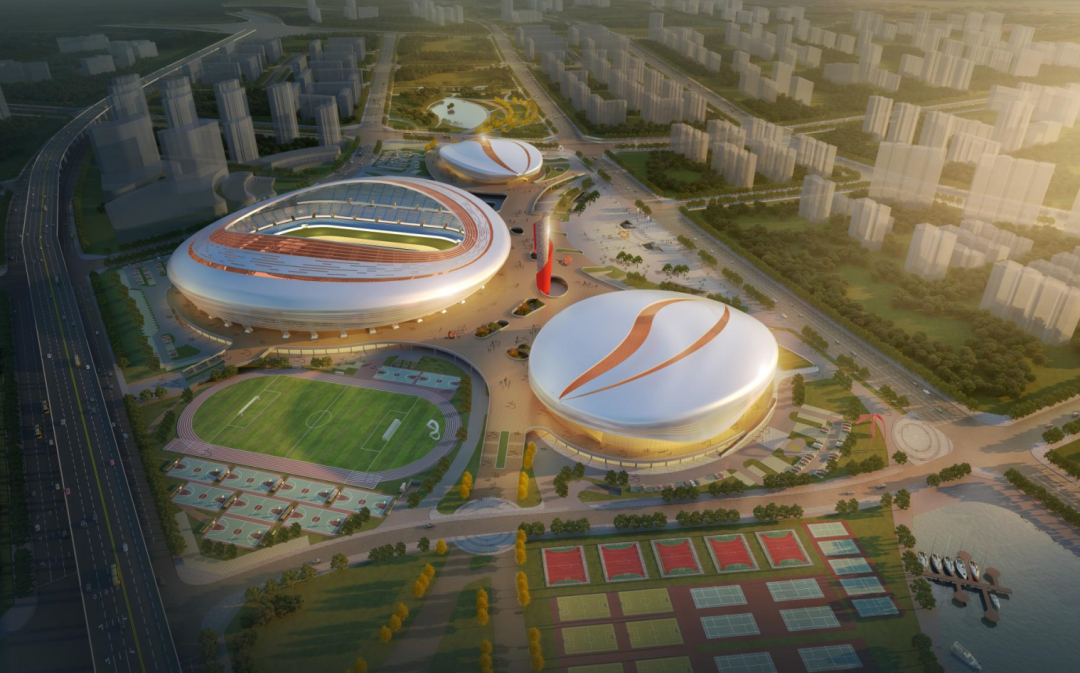 一场两馆,即4万固定座+1万活动座的综合体育场(含一个室外训练场),1.5万座的综合体育馆,3千座的游泳跳水馆。