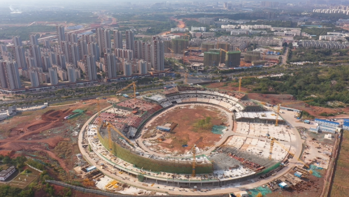 计划2021年12月下旬完成B、D区域混凝土结构工程;计划2021年11月下旬启动综合体育场C区域钢结构施工,2021年12月启动综合体育场A区域钢结构施工。