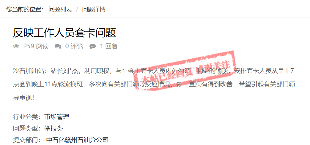 1.中石化章贡沙石加油站范围内确实存在部分时间段社会人员在加油现场套卡套现的现象。加油站虽然每次发现套卡人员都进行了劝阻及驱离,并多次进行报警求助,投入资金对加油机进行技术上的升级改造,但未能完全杜绝加油站外来社会人员套卡套现情况的发生。