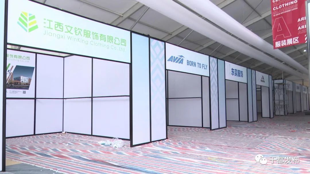 12月24日,记者在第二届中国赣州(于都)服装产业博览会展会现场看到,工作人员正在忙着布置会场,为即将举行的博览会做好准备工作。
