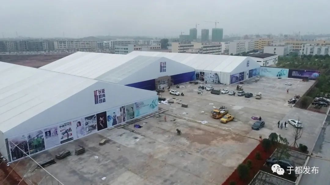 “这里是于都县上欧工业园区FDC时尚产业综合体,第二届中国(赣州)纺织服装产业博览会即将在这里举办,本届服博会主要有时尚走秀、制造大会、设计比赛、服装论坛等活动,在现场,工作人员正在有序的开展各项筹备工作。”
