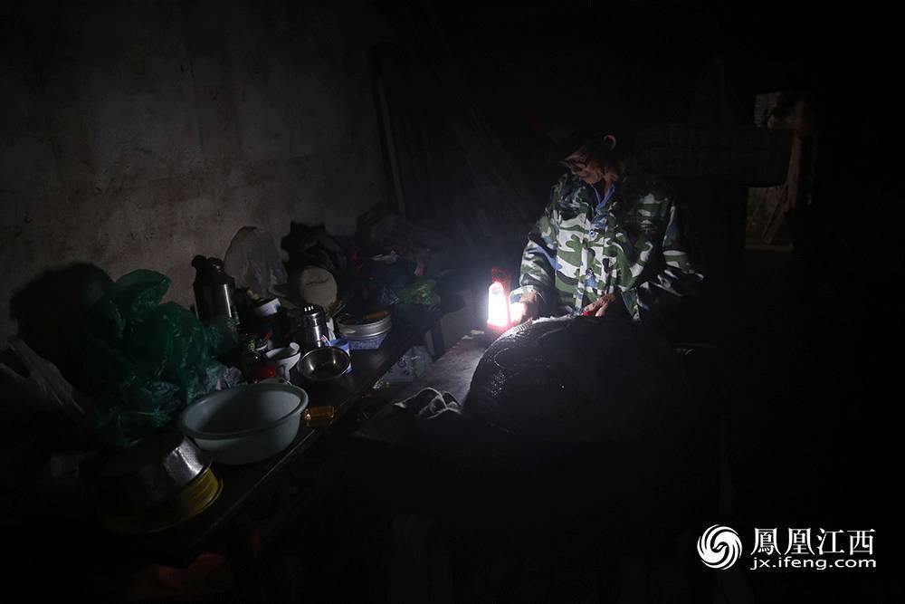 转眼夜幕即将降临,老曹家唯一的照明工具就是这盏应急灯。由于只能持续使用3个小时左右,所以老曹和老伴吃完晚饭后,就直接睡觉。