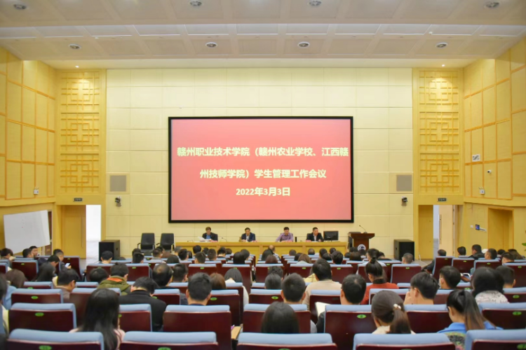 3月3日,赣州职业技术学院在图书馆一楼报告厅召开学生管理工作会议,赣州职业技术学院院长、江西赣州技师学院党委书记黄鹏出席会议并讲话。会议由院领导潘元生主持,分管领导熊晓林参加会议,赣州职业技术学院、赣州农业学校、江西赣州技师学院三校学生管理人员和宣传统战部、后勤与资产管理处有关人员参加会议。