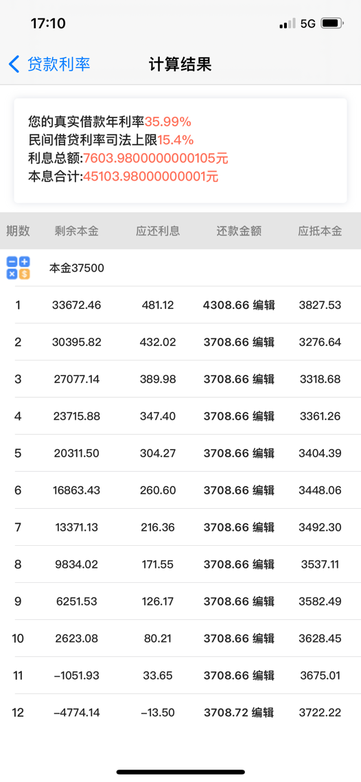 根据该消费者出示的截图信息,计算下来,该笔贷款综合年化利率达35.99%。