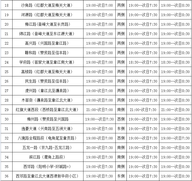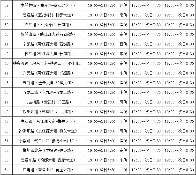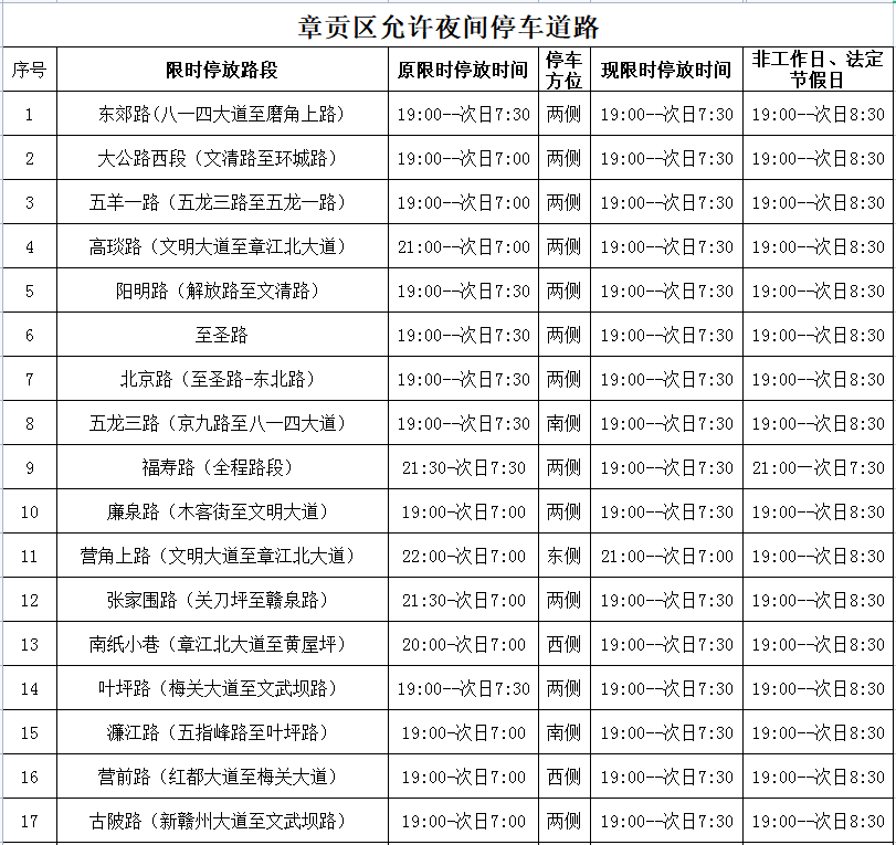 4月10日起,章贡区54条允许夜间停车道路的停放时间调整为19:00—次日7:30,延长30分钟;