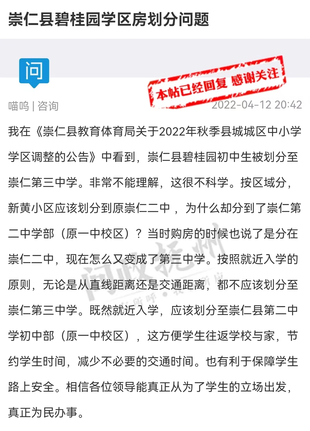 崇仁县教体部门回复