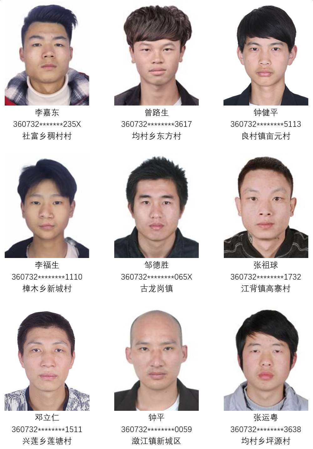 4月24日,湖口县公安局发布关于劝返缅北重点人员的通告。 湖口县根据国家相关法律及政策,多次敦促湖口籍滞留缅北窝点人员尽快回国。现湖口县大部分滞留缅北窝点人员已回国报到,并依法从轻、减轻处罚或免除处罚。但仍有柳景平、杨助等9人无视政府部门的政策宣传和大力规劝,继续滞留缅北。现再次要求湖口籍滞留缅北窝点人员柳景平、杨助等9人(下图)务必在2022年7月1日前通过正规渠道入境回国。