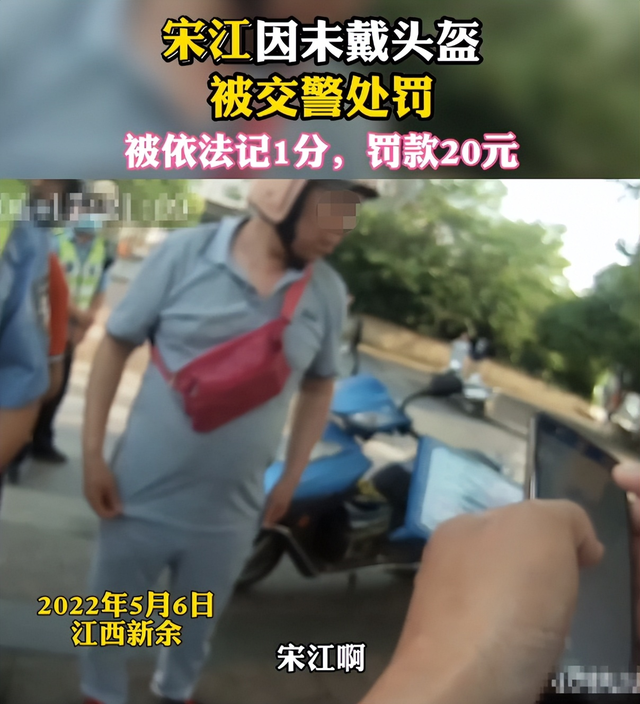 而就在不久前,另一位名人“宋江”也在这被“截获”了。5月6日,江西新余交警在执勤时,发现一男子驾驶摩托车未佩戴安全头盔,便将其拦下进行纠违。批评过程中,民警发现该男子名为“宋江”。在交警批评教育下,宋江认识到自己的错误,并诚恳接受了处罚。