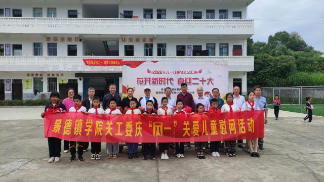 “六一”国际儿童节期间,景德镇学院党委委员、组织部部长朱贺江,关工委主任舒超英、顾问饶亚明等一行前往蛟潭镇徐炳南实验小学,开展庆“六一”关爱儿童慰问活动,为学院乡村振兴帮扶村胡宅村的14名学生送去关爱和祝福,并向辛勤工作在教育一线的老师们致以亲切问候。