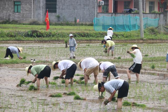 仪式结束后,吴丁和同学们一起下田,开展水稻移栽生产实践,体验农耕文化。“手把青秧插满田,低头便见水中天”,同学们通过老师手把手指导,学习水稻秧苗移栽技术,体验插秧生产实践。经过一上午的辛苦劳作,秧苗整整齐齐地插在水田里,呈现出一片生机盎然。