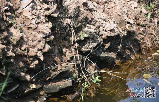 瓦屑坝遗址之下,埋藏着的碎瓦(叶飞鹰摄)