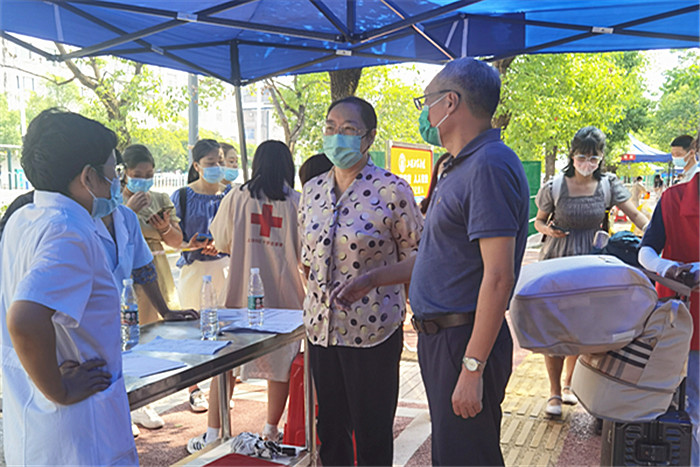9月17日是上饶师范学院新生报到第一天。该校党委副书记、校长詹世友,党委副书记刘国云,党委委员、副校长郑彦芳等深入高铁站迎新点、入校消杀通道、行李接驳站、各学院报到点、核酸检测点等处检查指导迎新工作,看望新生和慰问迎新工作人员,叮嘱全体工作人员严格落实学校疫情防控各项要求,按照迎新工作部署,尽心尽力,履职尽责,为2022级新生提供周到满意的服务。党委委员、后勤与基建管理处处长郑宗仁,党委(院长)办公室、校团委、校医院负责人参加。