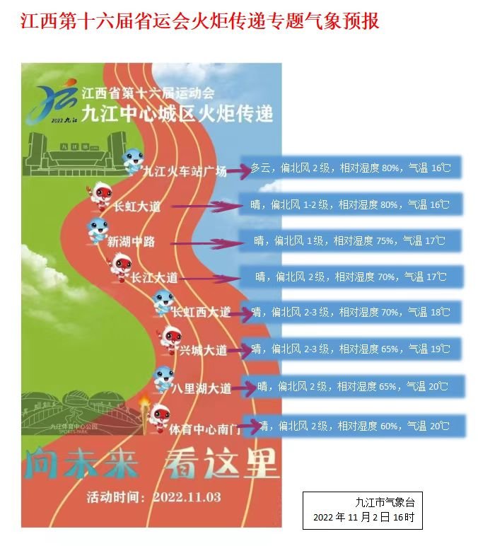 “赣”为天下先,“浔”扬中国梦。明日(11月3日)8时,江西省第十六届运动会火炬在九江中心城区站传递。