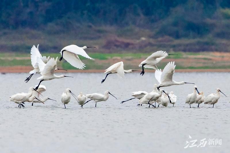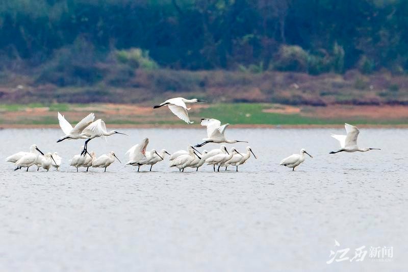 12月2日,成群越冬候鸟集结鄱阳湖湖口县湿地,在此栖息、觅食。连日来,湖口县相关部门在辖区鄱阳湖岸线采取有效措施,强化对野生动物的动态监测和观察,全力保护候鸟安全越冬。特约通讯员 张玉摄