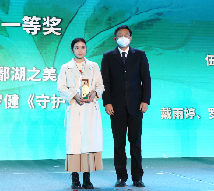 联合国粮农组织江西湿地项目官员、鄱阳湖保护区管理局副局长熊超逸,国际鹤类鹤类基金会(美国)北京代表处官员金杰锋,永修县委常委、宣传部部长戴军分别上台为获奖者代表颁奖。