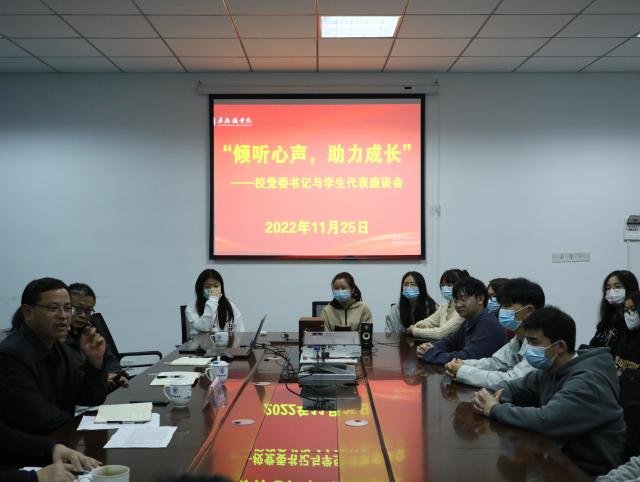 随后,叶观荣参加了经管学院学生代表座谈交流会。学生代表积极发言,围绕食堂餐饮、课程安排、宿舍设施、疫情防控、考公考研、图书馆闭馆时间、公共设施使用等方面遇到的问题提出中肯的意见与建议,为学校的发展建言献策。叶观荣认真倾听,详细记录了学生代表提出的问题,要求相关部门抓紧落实,尽快解决,用心用情做好学生服务工作,为同学们的学习和生活提供良好的环境。