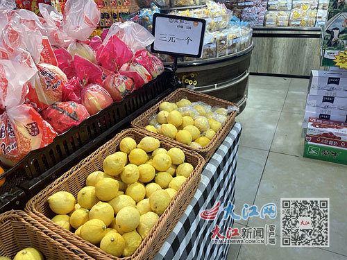 在一些社区超市,记者看到,柠檬的价格相对便宜一些,在凤凰家园小区的一家社区超市里,柠檬3元一个。