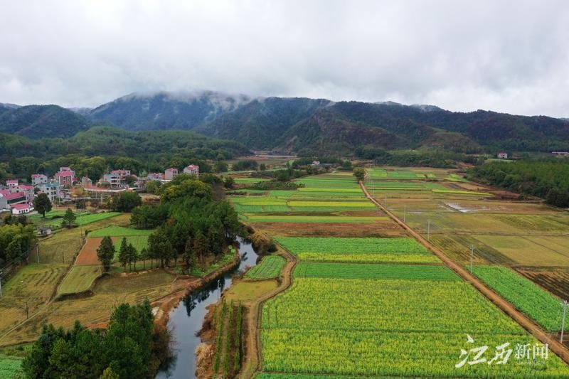 2月4日,泰和县苏溪镇,油菜花竞相开放,与乡村田园相映成景,美不胜收。特约通讯员 邓和平摄