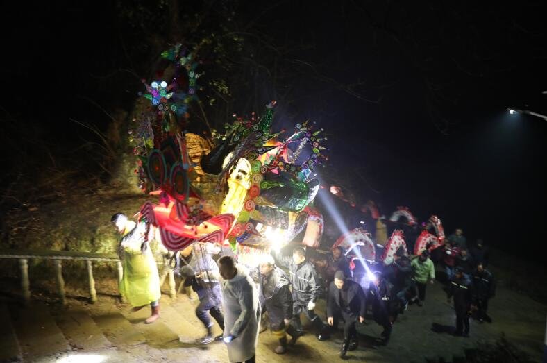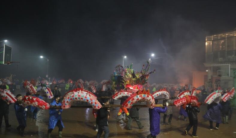 2月5日是元宵佳节,当晚彭泽县黄花镇峨峰村举行了板龙游街的民俗活动。浩浩荡荡的板龙从村中游出,沿着村庄、田地、池塘、屋场、街道,延绵上百米,鞭炮声夹杂着村民的欢声笑语,诉说着欢乐,祈求着新年风调雨顺,五谷丰登。