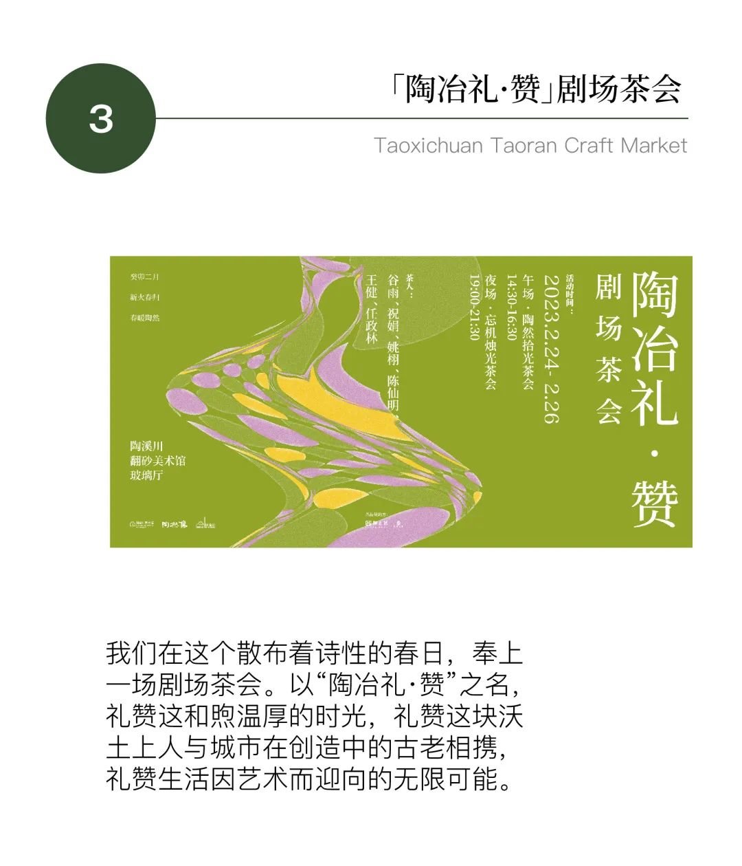 注:(含单场茶会门票及本期陶然集三日门票,凡报名茶会即获得陶溪川美术馆VIP资格,本人享受一年内免费参观陶溪川美术馆群)