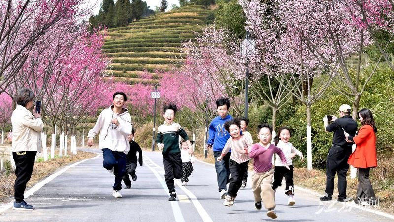 2月18日,乐平市历居山生态农业发展有限公司茶叶生产基地里,一群孩子正在基地的梅花大道奔跑、玩耍。 连日来,这里400多棵梅花竞相绽放,吸引了众多市民和游客前来观梅赏景。特约通讯员 朱定文摄