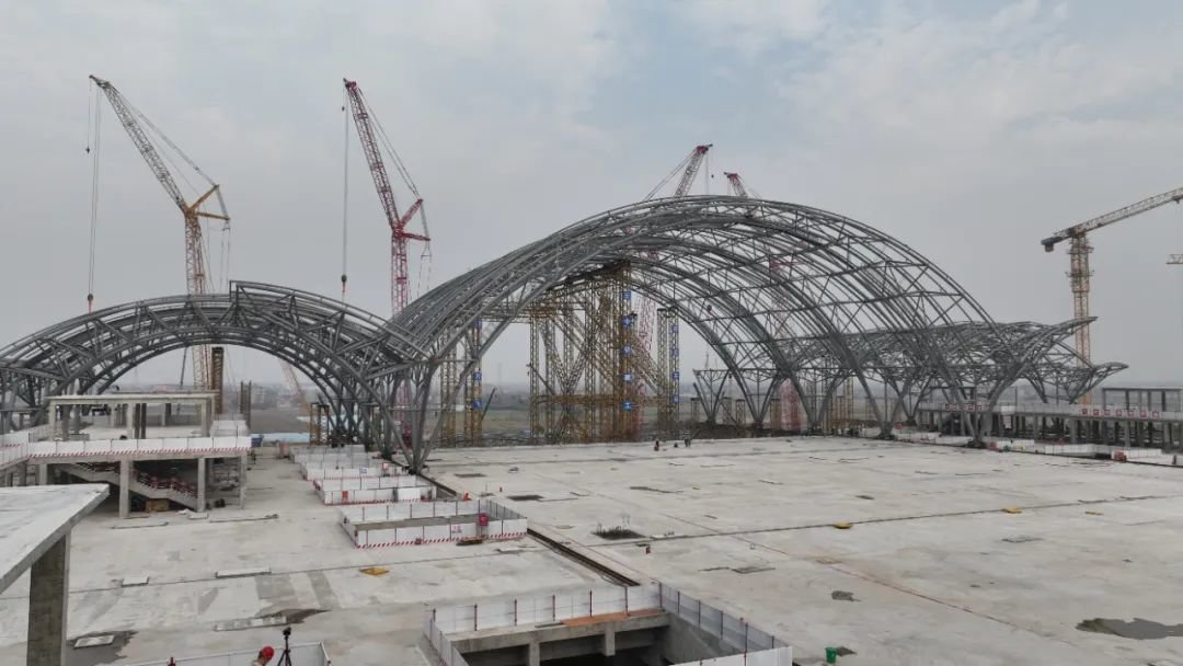 南昌东站的三联拱屋面钢结构整体同步滑移技术应用在全国铁路站房项目目前属于首例。