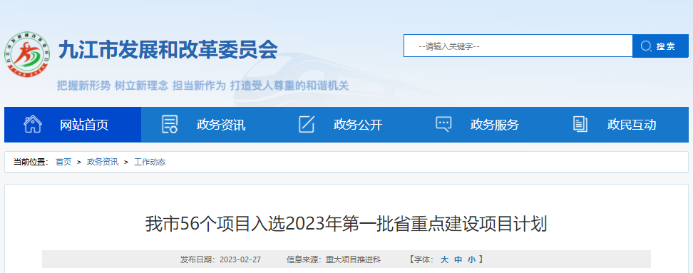 近日,九江市发改委官网公布