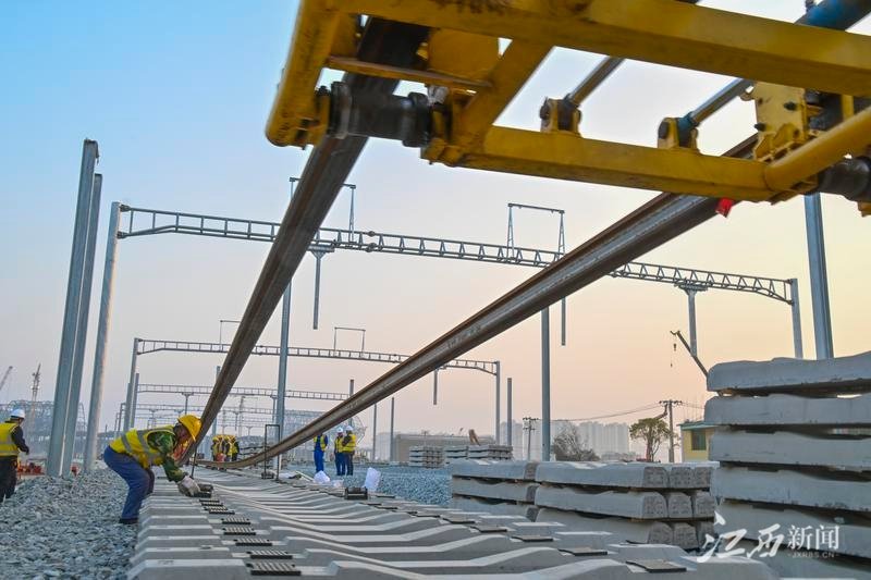 江西新闻客户端讯(江西日报全媒体记者李劼)3月4日,在昌景黄高铁南昌东站道岔施工现场一派繁忙景象,吊机挥舞着长臂,工程车来回穿梭,建设者铆足干劲,正在加紧进行铺轨作业。昌景黄高铁项目预计2023年4月底完成江西段铺轨任务,年底全线开通运营。