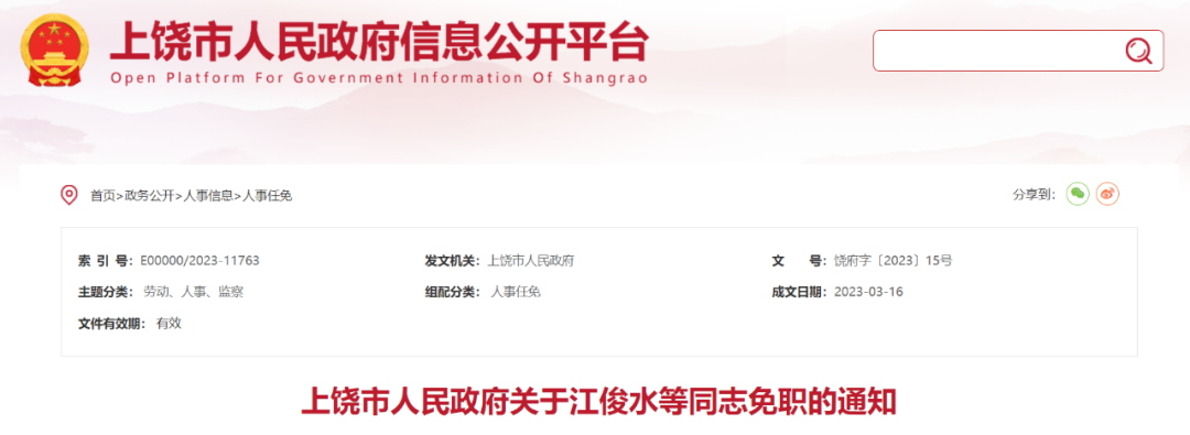 江俊水同志的上饶市教育发展研究中心主任职务;