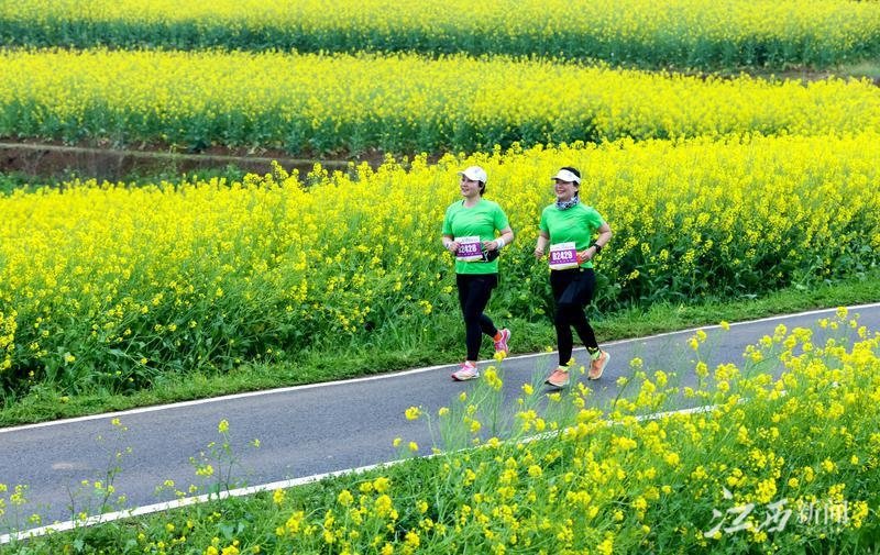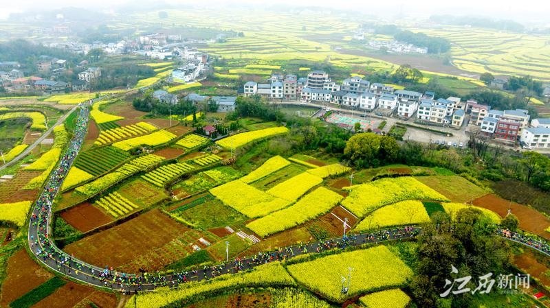 3月19日,“2023第三届瑞昌乡村马拉松”在瑞昌武蛟乡万亩油菜花海核心区开跑,近5000名马拉松爱好者迎着和煦的春风,奔跑在金色的油菜花海中。特约通讯员 魏东升摄
