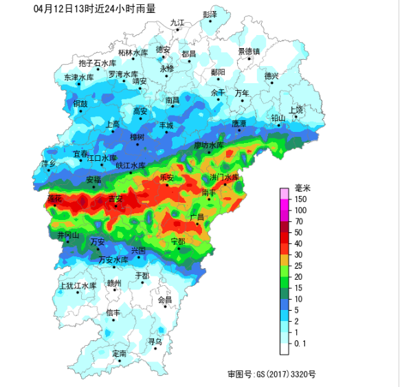 4月13日~14日白天:赣北和赣中阴有中雨或雷雨,部分地区有大雨,局部地区有暴雨;赣南多云转阵雨或雷阵雨。