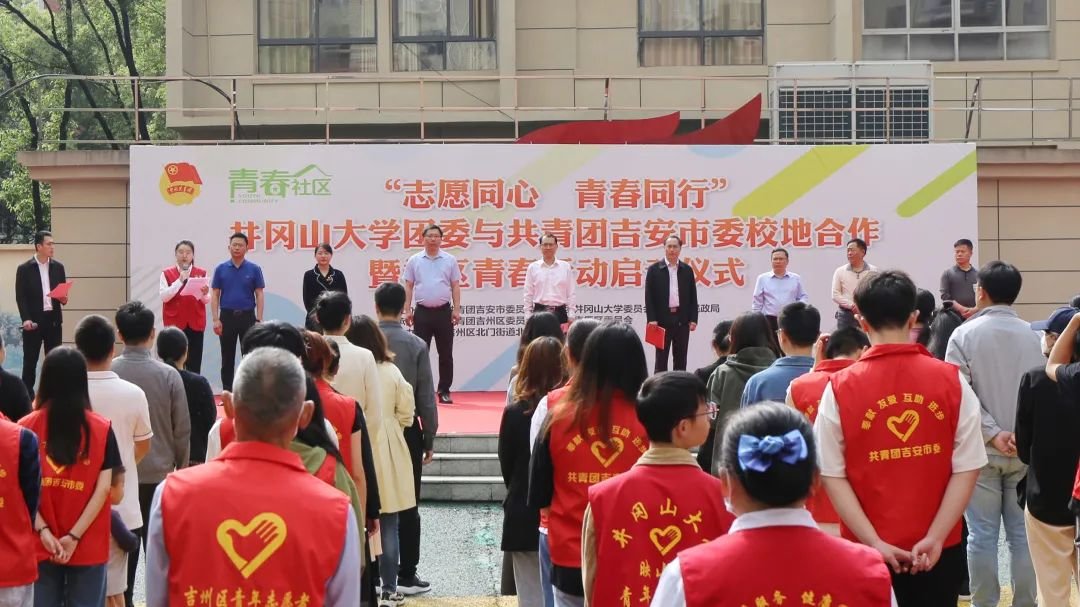 志愿同心,青春同行。为深入贯彻落实党的二十大精神,推动大学生社区实践计划,引领青年学生在基层社会治理中发挥生力军作用,4月15日,“志愿同心 青春同行”井冈山大学团委与共青团吉安市委校地合作暨社区青春行动启动仪式在北门街道北门社区举办。