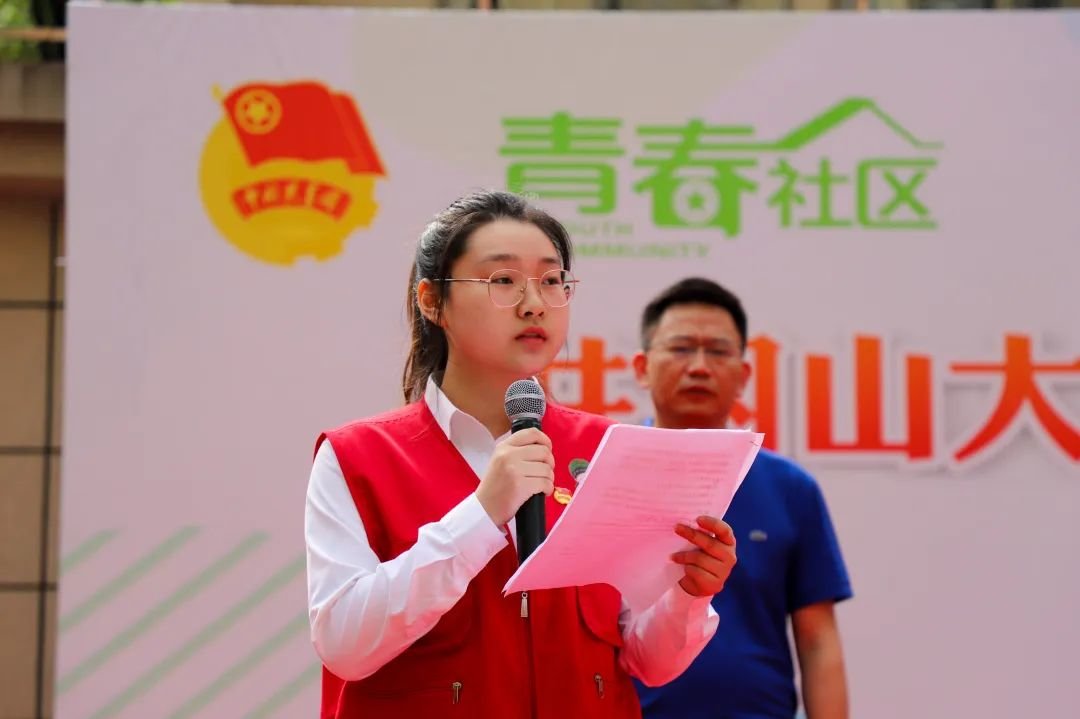 井冈山大学青年志愿者任睿代表发言,倡议青年志愿者走进社区、结合实际开展丰富多样的青年志愿服务活动,感染和带动身边更多人加入到社区志愿服务的行列之中。