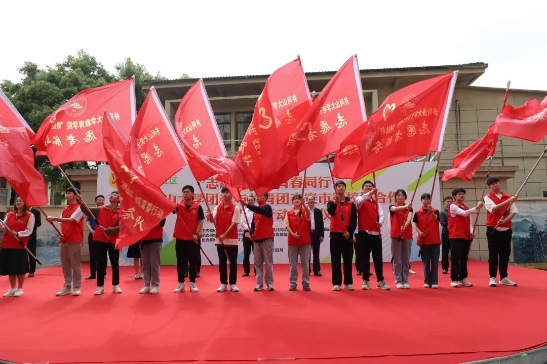 活动现场,井冈山大学团委与共青团吉安市委校地合作签约仪式圆满完成,为第一批试点社区授牌,并为学院志愿服务队授旗。下一步,各学院志愿服务队将结合社区日常工作,发挥各自专长领域,引导更多井大学子走进社区参与社区治理,以共建促发展,进一步夯实社区志愿服务的力量,达到“优势互补,资源共享,共同提高”的目的。