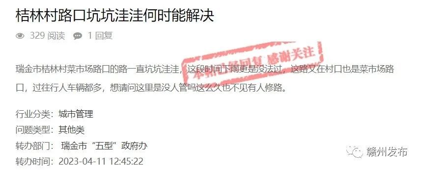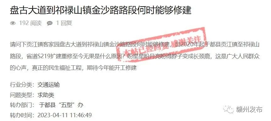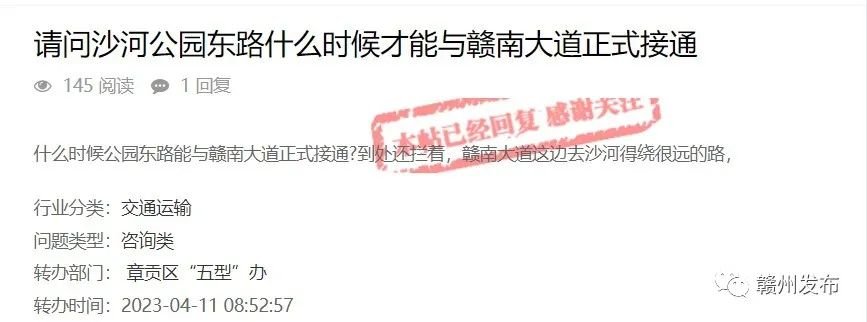 有网友在“问政赣州”平台咨询