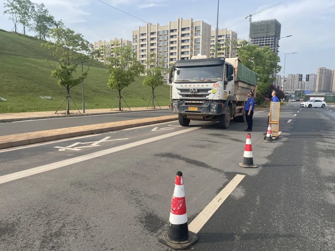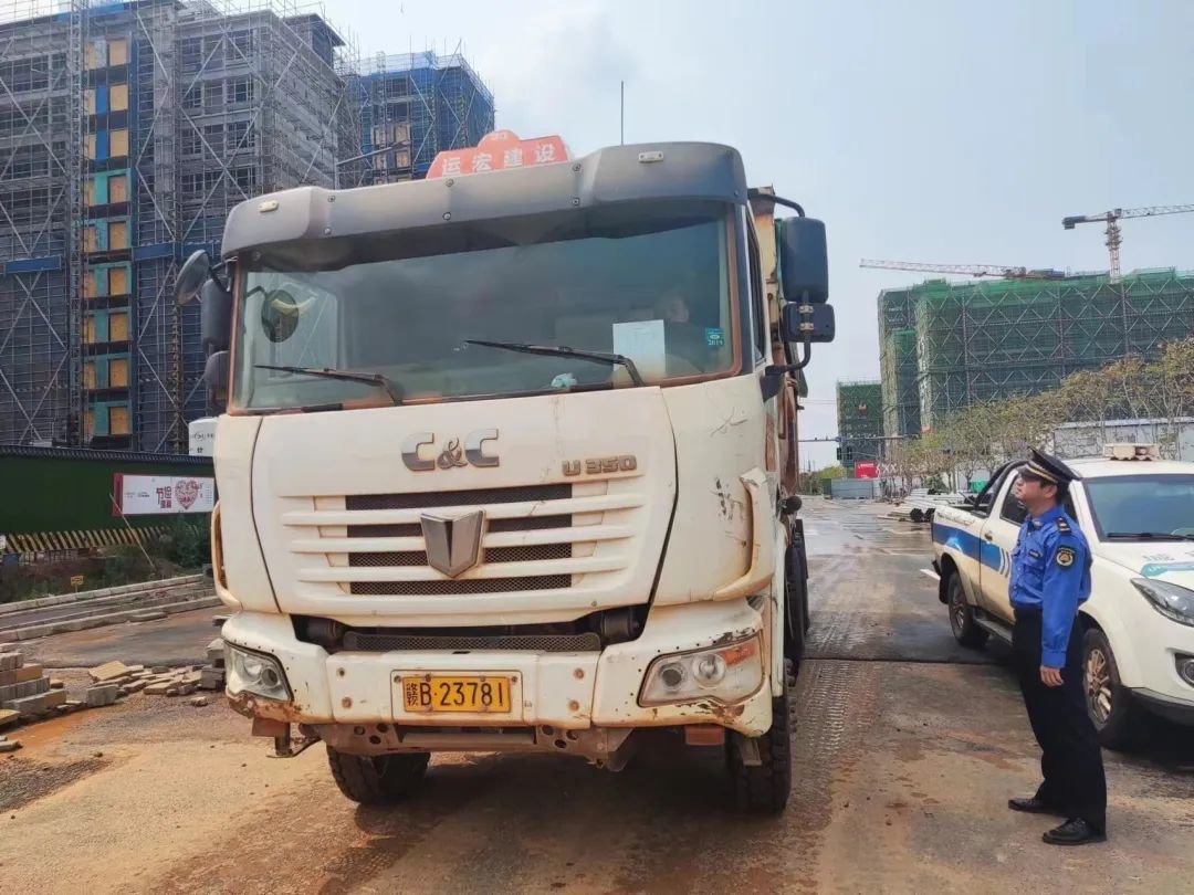 加强工地源头治理的同时,区城管分局紧盯道路扬尘污染源头,采取“定点值守+随机抽查”的方式,设卡定岗,对建筑垃圾运输车辆车身进行抽查。