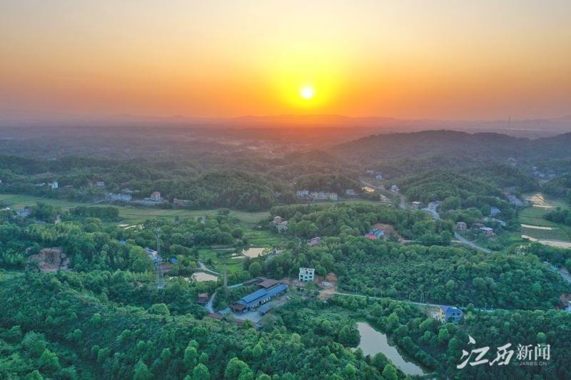 5月1日,位于萍乡市湘东区下埠镇栗塘村,晚霞给整个村庄刷上斑斓的色彩,呈现出一幅清新自然唯美的乡村田园画卷。通讯员 邓建萍摄