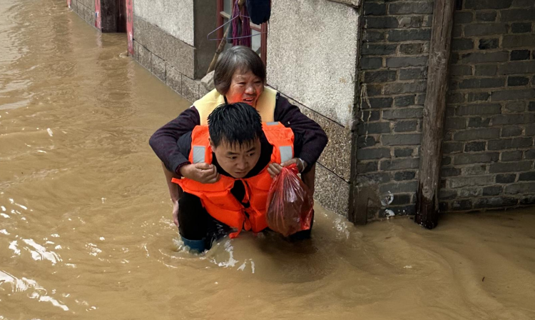 5月5日至6日,江西抚州多个乡镇遭遇特大暴雨。强降雨导致河水猛涨、农田被淹,出现了大规模城镇内涝。武警江西总队抚州支队官兵迅速集结,携带救援装备赶往抚州市宜黄县梨溪镇、崇仁县六家桥乡等地展开救援。